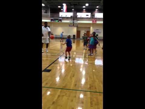 He had basketball camp again. He really enjoys it and has learned a ton. The coach is very advanced. He sent the kids home with notebooks on want to work on. Then the next day Amelia and him were in the garage playing. He had a whistle on, small basketball goal up, and was teaching Amelia exactly how he was taught. So funny!