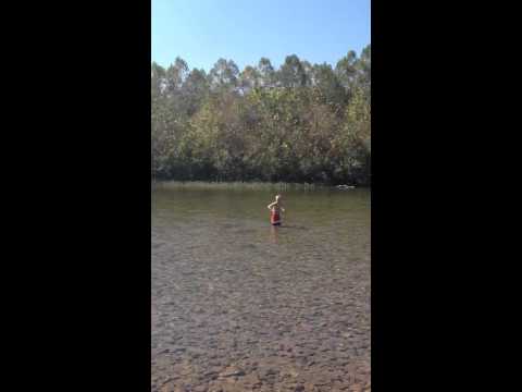 Baron went swimming in very cold water and it was cool outside. Nolan could not even get in
